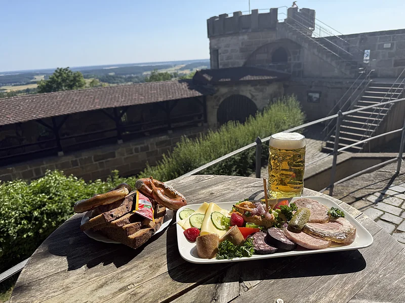 High atop Altenburg Castle, experience Franconian hospitality in a unique castle atmosphere. Our family-run restaurant and beer garden combine regional cuisine, tradition, and warm hospitality. Whether you prefer homemade roasts, hearty classics, or a cold beer with a breathtaking view – here, Franconia tastes authentic. In summer, young and old alike enjoy creamy, delicious soft-serve ice cream in the beer garden, while regular events, celebrations, and special culinary evenings transform the castle into a vibrant meeting place. A place for families, day-trippers, and gourmets – genuine, regional, and run with love.