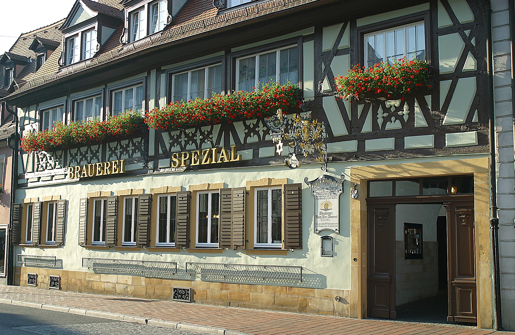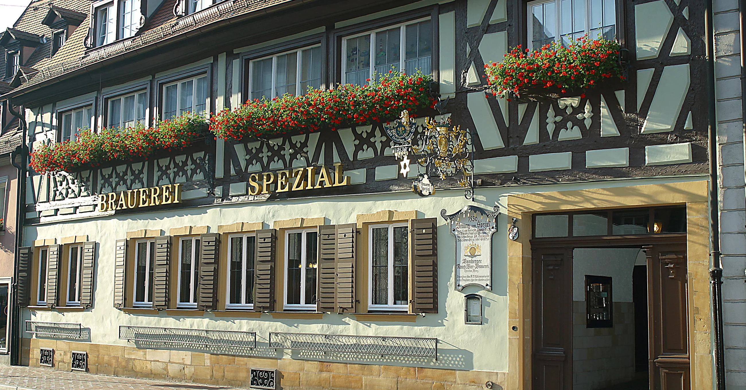 Just five minutes walk from the pedestrian zone, the Spezial brewery is an old inn, boasting a cosy atmosphere. It brings you to the source of our well-known smoked beer specialities. Franconian cuisine. Cosy accommodation.
