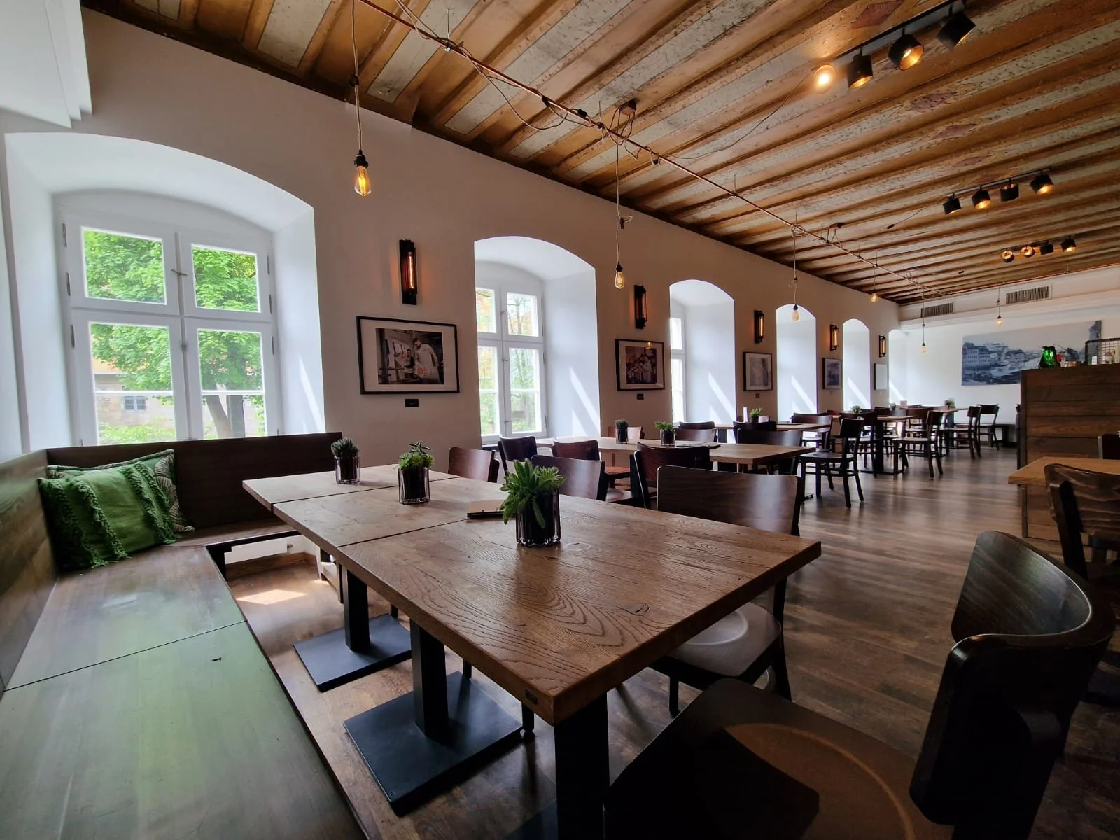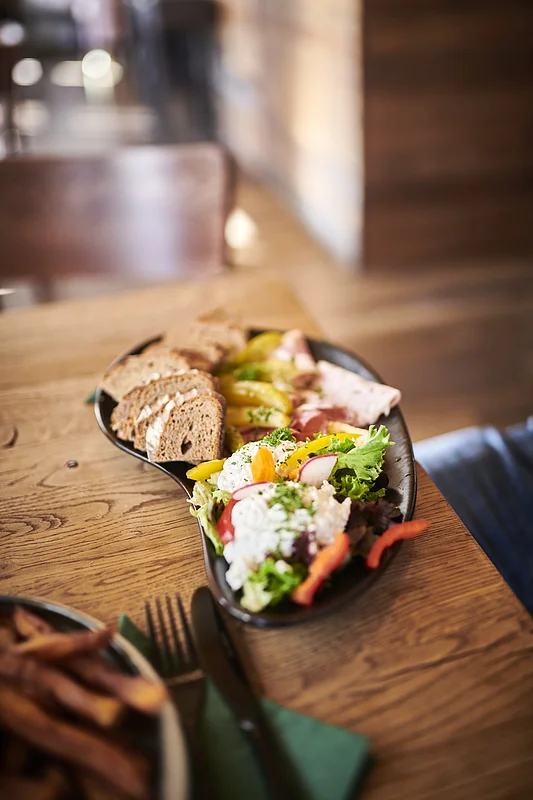 The Brüderla Bamberg perfectly combines dishes from the gourmet region of Upper Franconia. Franconian home cooking such as schnitzel, roast pork or Schäuferla, but also innovative dishes and changing weekly dishes (also vegan) are offered. In addition, a delicious, home-brewed beer, which is produced in nearby Reckendorf, is served with the meal. Try the creations of the two owners in a traditional atmosphere paired with modern accents. From the tasty light, malty red beer and distinctive full beer to hoppy special beers and changing barrel guests, you will be served the best Franconian art of brewing on tap. The restaurant offers beautiful outdoor seating and offers a wonderful view of the old town hall and the lower and upper bridge from the guest room. In addition to beer, there are of course other drinks such as Franconian wine, fine long drinks and delicious coffee. We are looking forward to your visit!