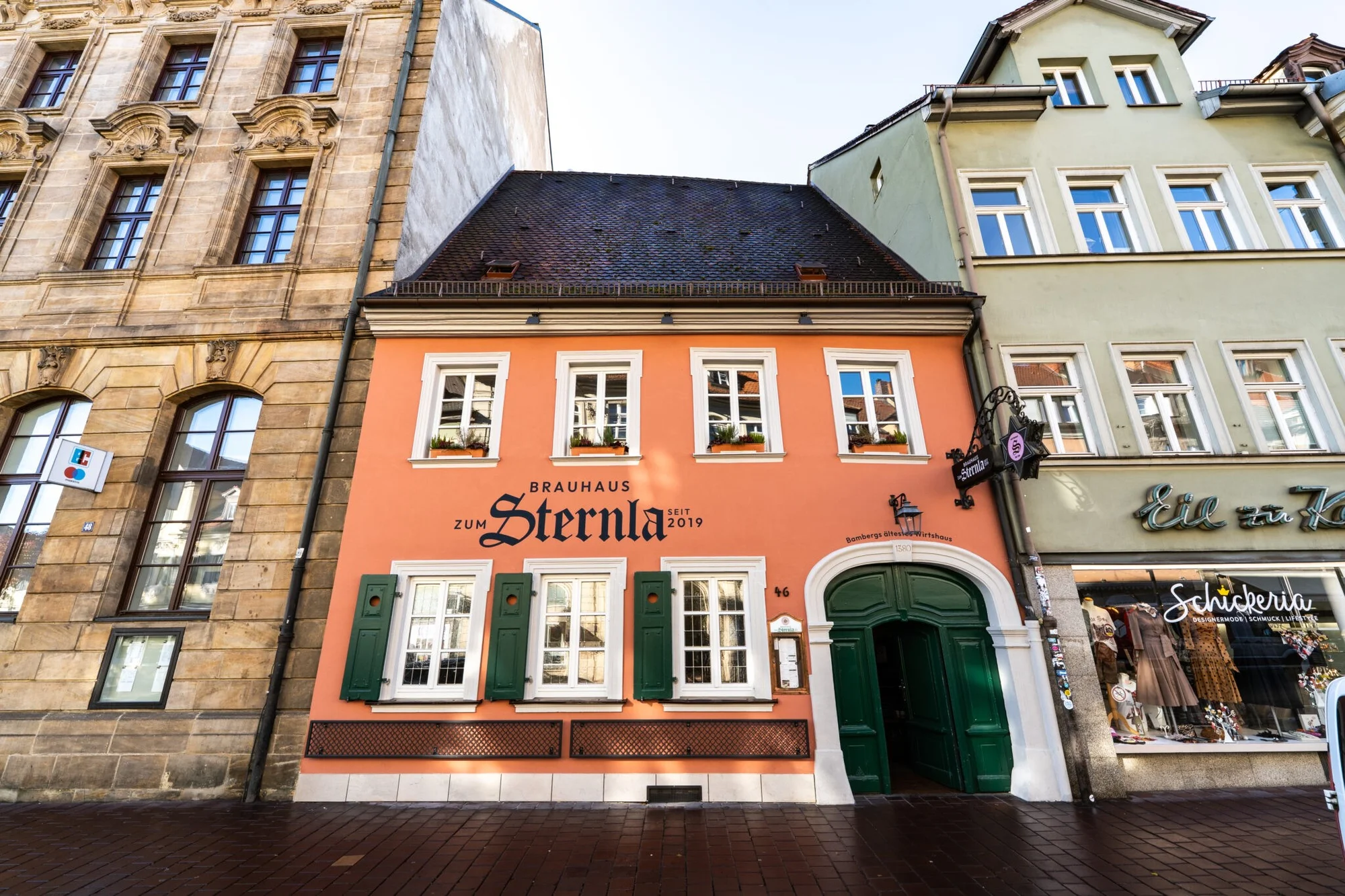 In the Sternla -since 1380- tradition and customs meet the most modern brewery technology -since 2019-. Locals and tourists meet here for "a Schäuferla", a Franconian snack and for "a Seidla" beer, freshly tapped directly from the storage tank. Of course you will also find a selection of vegetarian dishes on our menu. Here you can experience Franconian hospitality and Bamberg's beer culture in a rustic atmosphere. We not only live in Franconia, we celebrate our region: "Franconian - nothing else"! Our inn has several rooms, each with its own story to tell. Not to forget the shady inner courtyard with its bar, which is open during the summer months. Are you interested in beer tastings, brewery tours or brewing courses? Take a look at our website, you will surely find the right event for you there.