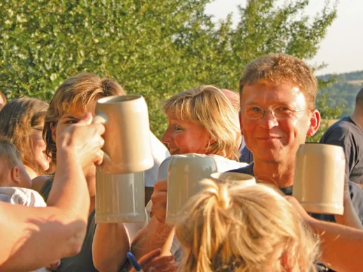 Sports fans are well looked after at the Kraft-Keller. You can watch the European Championships, the World Cup or Formula 1 above the bar or in a special shelter and still enjoy being in the middle of the countryside. If you start feeling a little peckish you can have a quick pit stop with a selection of light Franconian meals and hot dishes such as garlic bread, steaks and grilled mackerel.