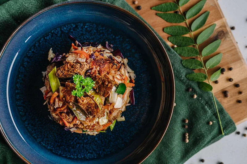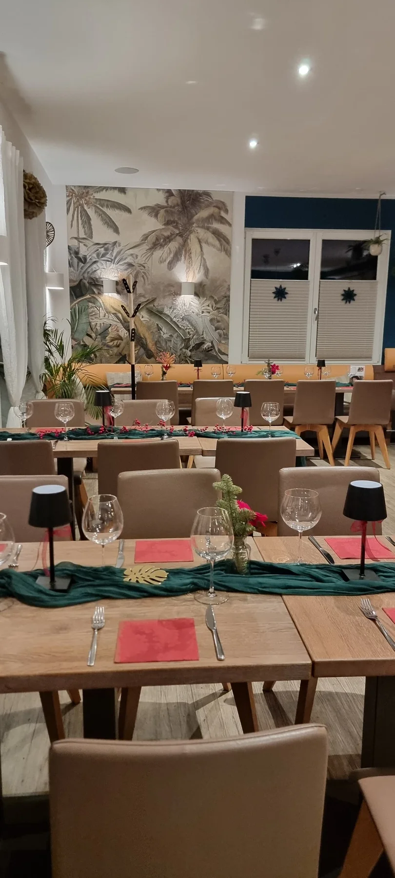 The dishes are multifaceted and precious, like the gemstone sapphire. Our curries are prepared according to ancient Ayurvedic recipes and consist of coconut milk, herbs, and an average of ten different spices, such as pepper, mustard, cinnamon, coriander, cloves, turmeric, cardamom, cumin, bay leaf, and ginger. We also offer organic tea from Sri Lanka, fine regional wines, and wonderful cocktails.
