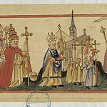 Weihe von St. Stephan durch Papst Benedikt VIII. unter Anwesenheit von Kaiser Heinrich II. und seiner Gemahlin Kunigunde. Staatsbibliothek Bamberg, Hist. Verein Bamberg HVG 21/42