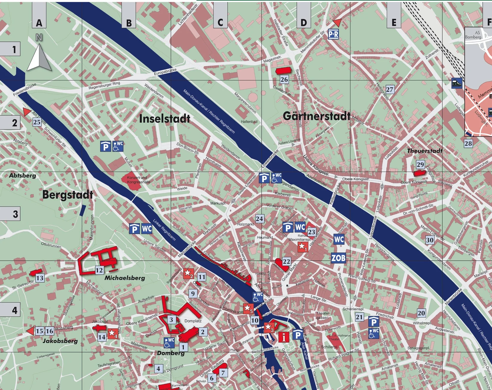 Bamberg has a well-used, regular bus service. Car drivers can make use of the Park&Ride offers and the inner-city parking facilities.
