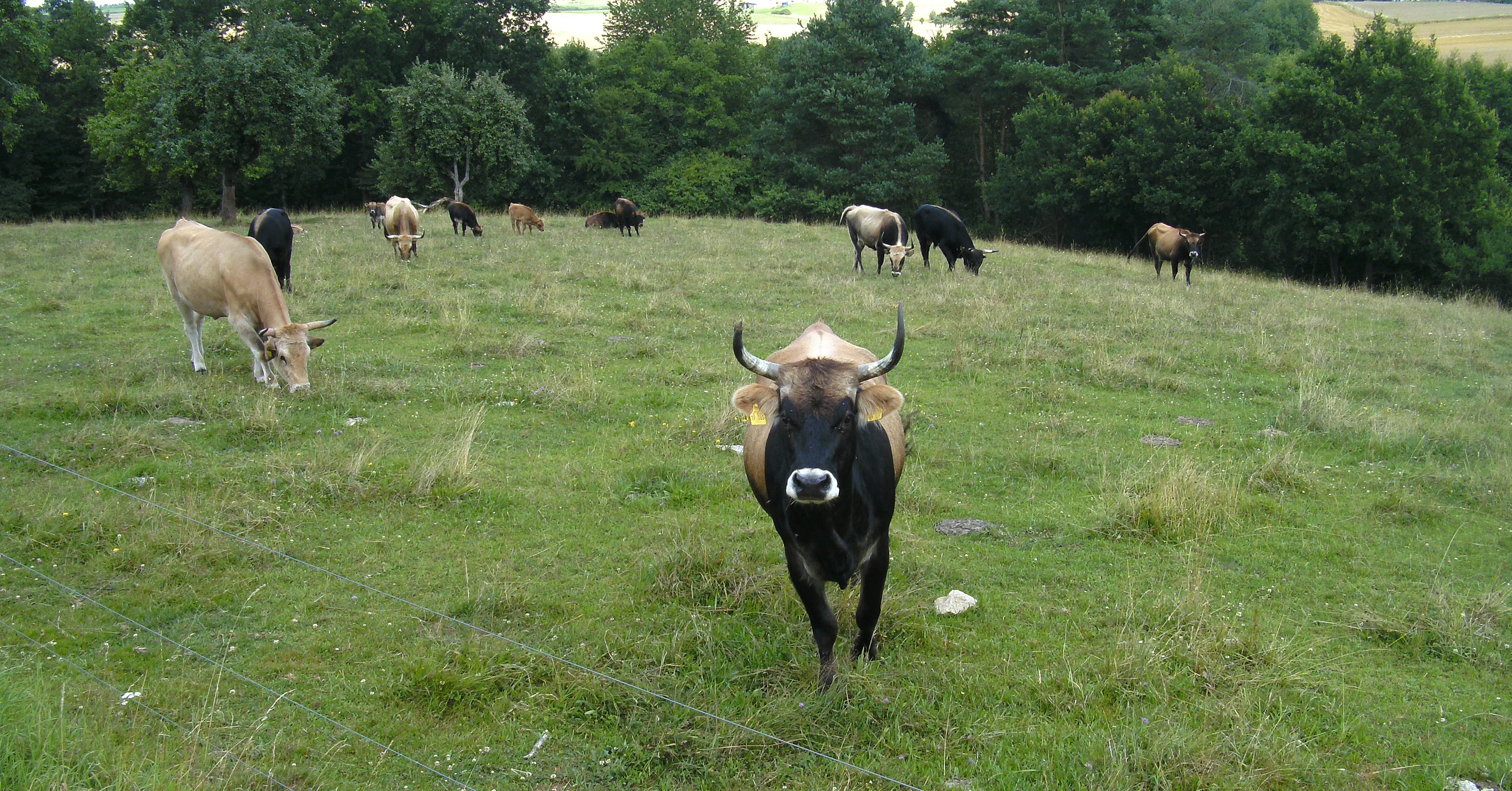 "Heckrinder" - a re-breed of the aurochs which was native to this region in former times as well as the water buffalo help to maintain the open pasture and therefore to protect a valuable part of the cultural landscape.