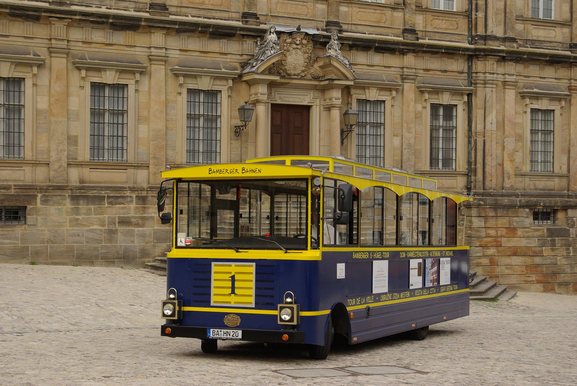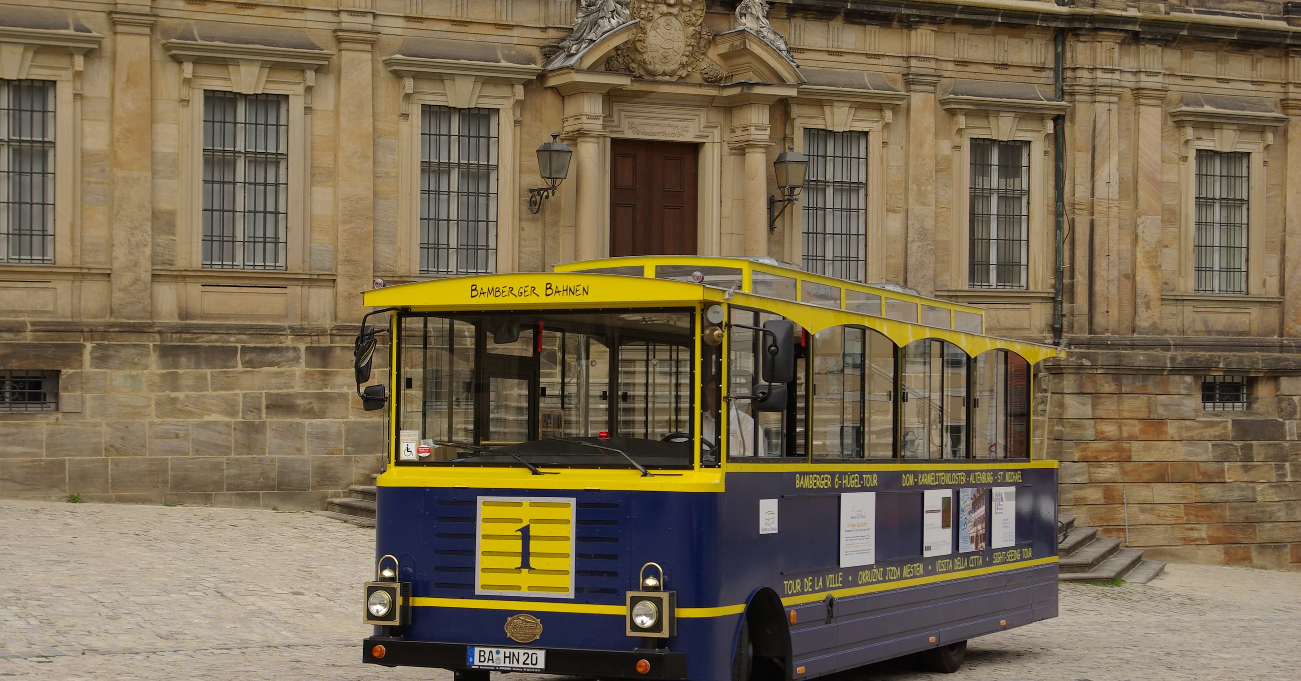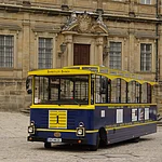 The tram has 27 seats, including 2 wheelchair spaces. and travels all day from the Cathedral to Altenburg Castle and St. Michael's, returning to the Cathedral. The tickets are valid from 10am - 8pm, the tram stops on request. Special and group trips are available on request