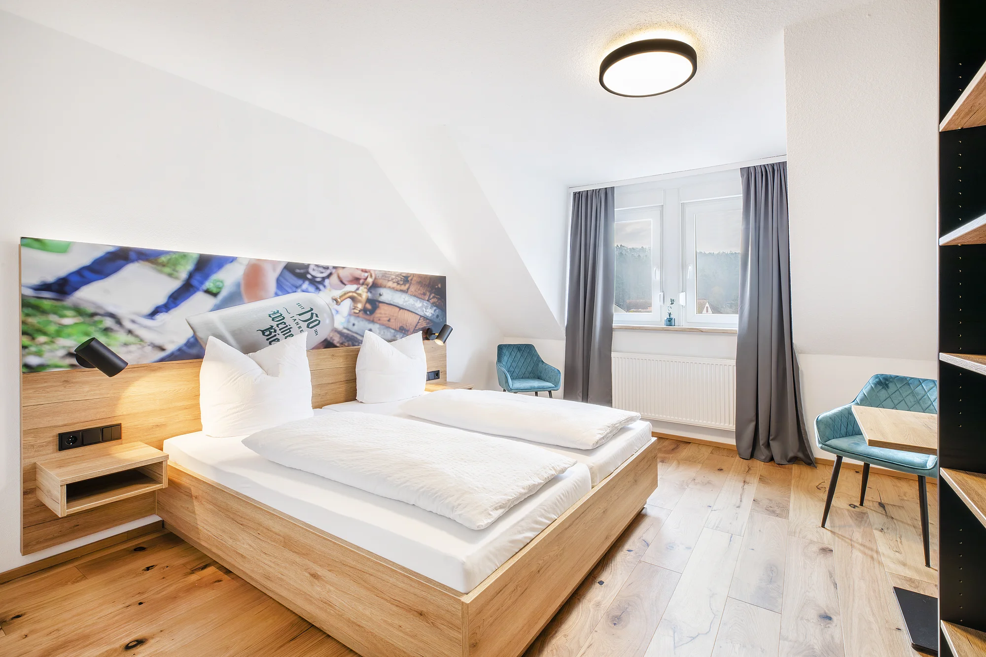 A holiday at the Kundmüller Brewery Inn – Franconia's beer paradise! Experience genuine and diverse beer enjoyment and Franconian hospitality at the Kundmüller Brewery Inn in Weiher – 10 km west of Bamberg. For over 150 years, this family-run establishment has been renowned for its excellent beer. The lovingly renovated rooms and holiday apartments, decorated in a beer-themed style, offer comfort and relaxation. In the cozy restaurant and the beer garden with its playground, you can enjoy homemade snacks and Franconian specialties. There's also a small beer museum and the "Neigschaut" digital tour to explore the world of beer in Weiher.