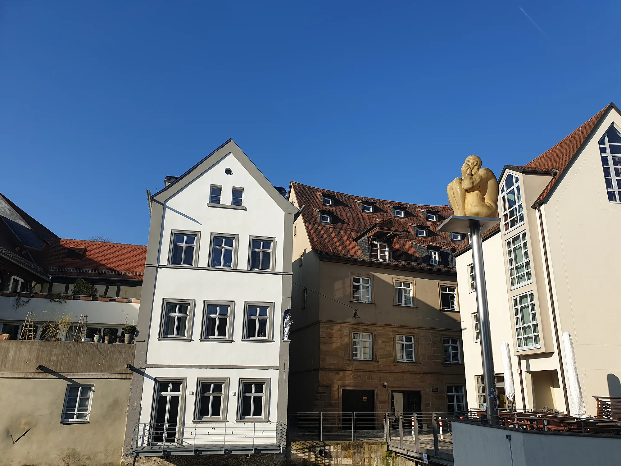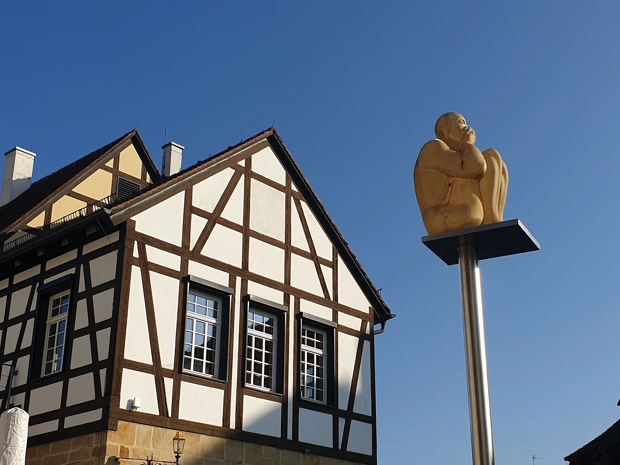 In 2012, Catalan artist Jaume Plensa presented his six-month exhibition EIGHT POETS in public space. Eight illuminated large sculptures set impressive light accents in Bamberg's old town. This was followed by the purchase of the sculpture called “Air-Earth”, which was financed by donations, sponsorship money and foundations. Since then, the Plensa sculpture on the Obere Mühlbrücke has been attracting attention with its shimmering, fascinating glow, especially in the evening hours.