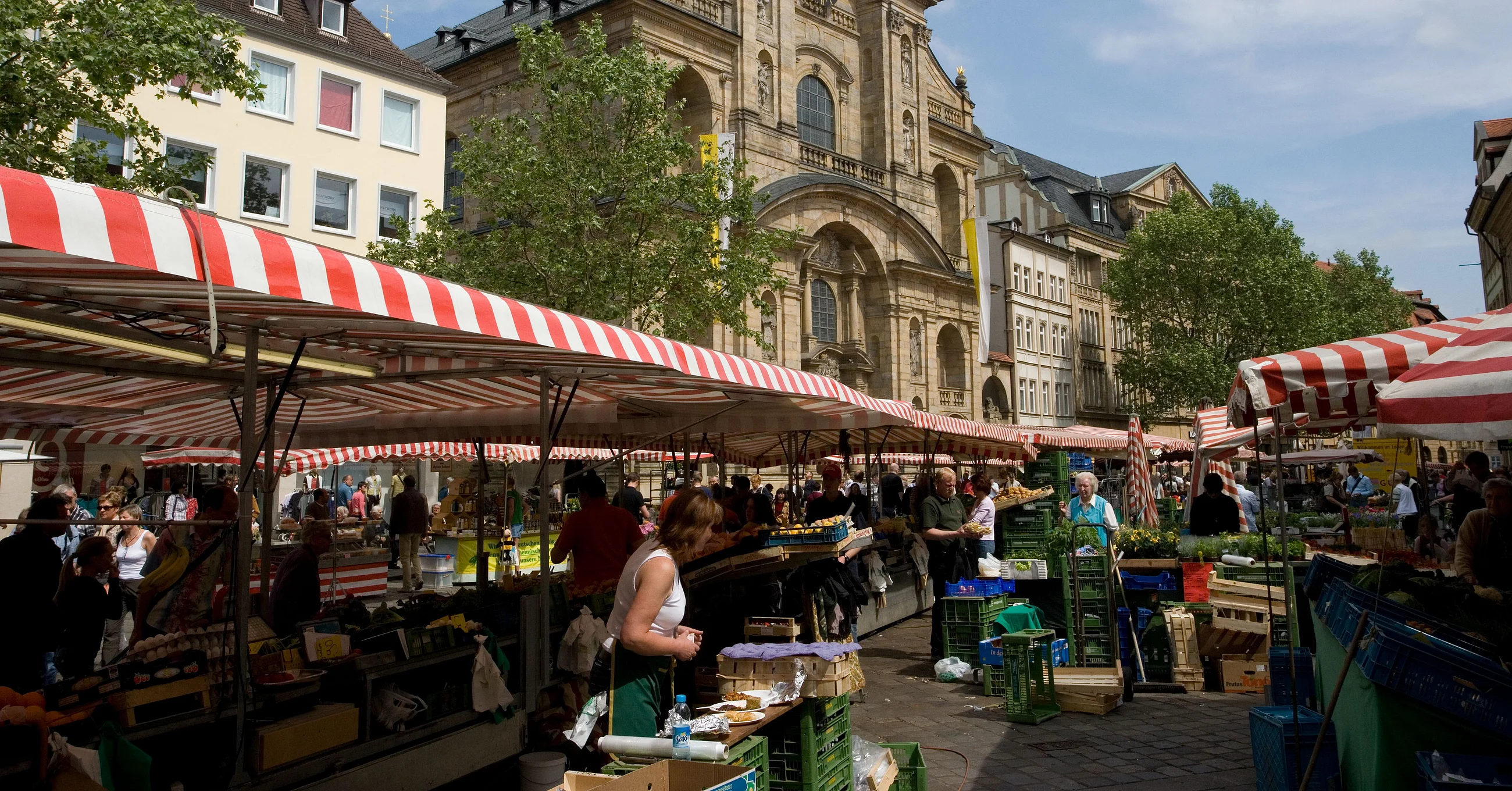 The weekly market in Bamberg’s pedestrian zone offers fruit and vegetables from the region and from all over the world from Mondays to Saturdays 7 am to 6 pm.