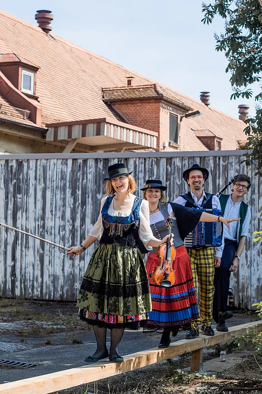 The musical collective around accordion player David Saam and clarinetist Res Richter is dedicated to wild, cheeky, and uninhibited music-making. Boxgalopp sees itself in the tradition of musicians from previous generations: The group delves deep into grandparents' and grandmas' treasure troves of sheet music to unearth true gems from Franconian and other musical cultures. In the great folk music cauldron, these regional and ecologically sound treasures are vigorously stirred and seasoned with Boxgalopp's signature spices: passion, joy of playing, and energy. The result is a wonderful array of musical treats for dancing, listening, and singing along. It's no wonder, then, that at Boxgalopp concerts or dance evenings, people of all ages, from 1 to 99, happily jump and dance together. Or simply listen attentively and enjoy...