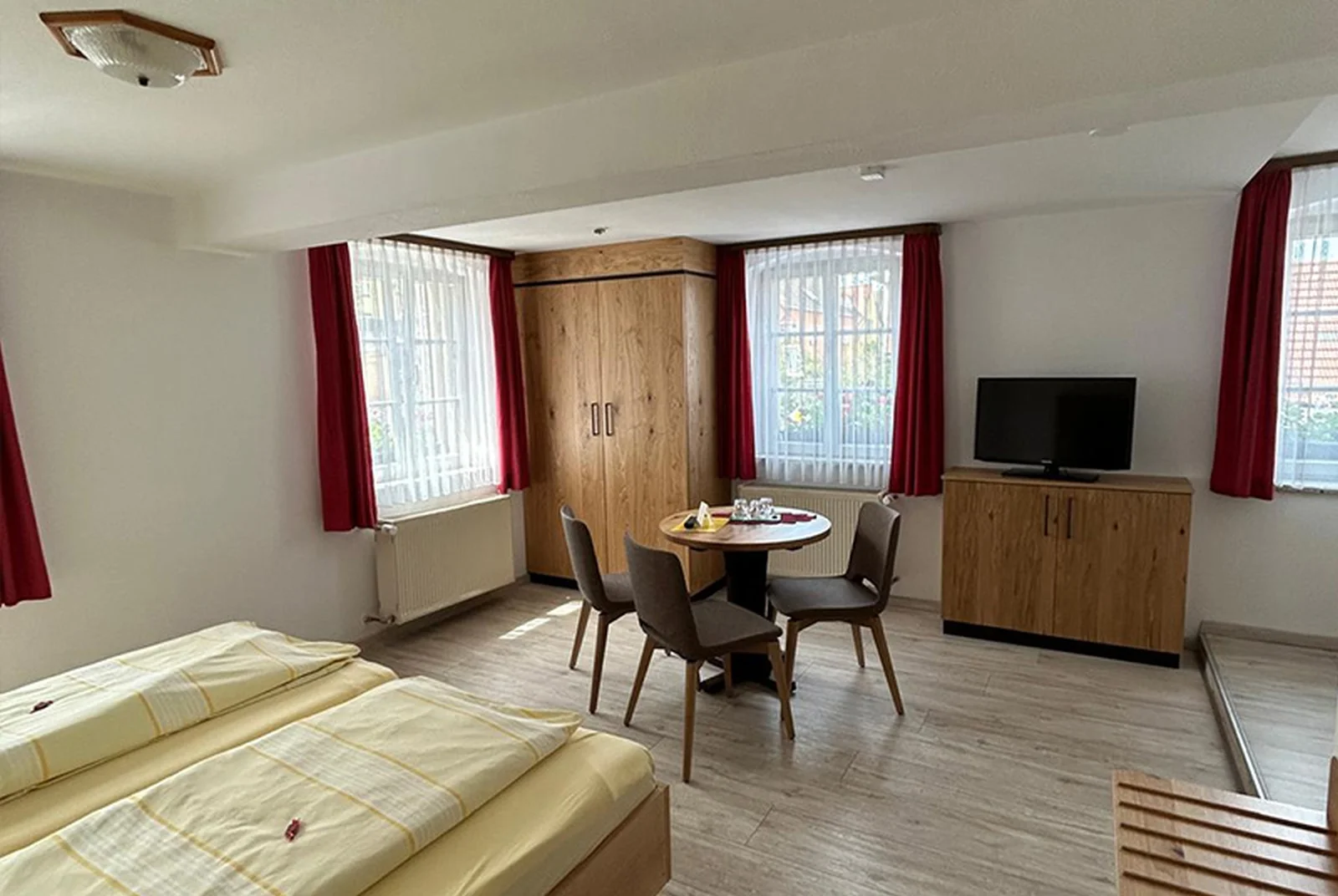 Located 4 km from Bamberg, right next to the Main-Danube Cycle Path (bike parking and charging available), is our family-run brewery inn, now in its sixth generation. Rooms in the brewery inn are accessible by elevator. Enjoy the breakfast buffet in the brewery taproom, overlooking the brewing kettles, and watch the brewers at work. With our house-brewed beer, traditional cuisine, and comfortable, modern rooms, our guests can experience the Franconian way of life. Visit our website: www.Sonnenbier.de