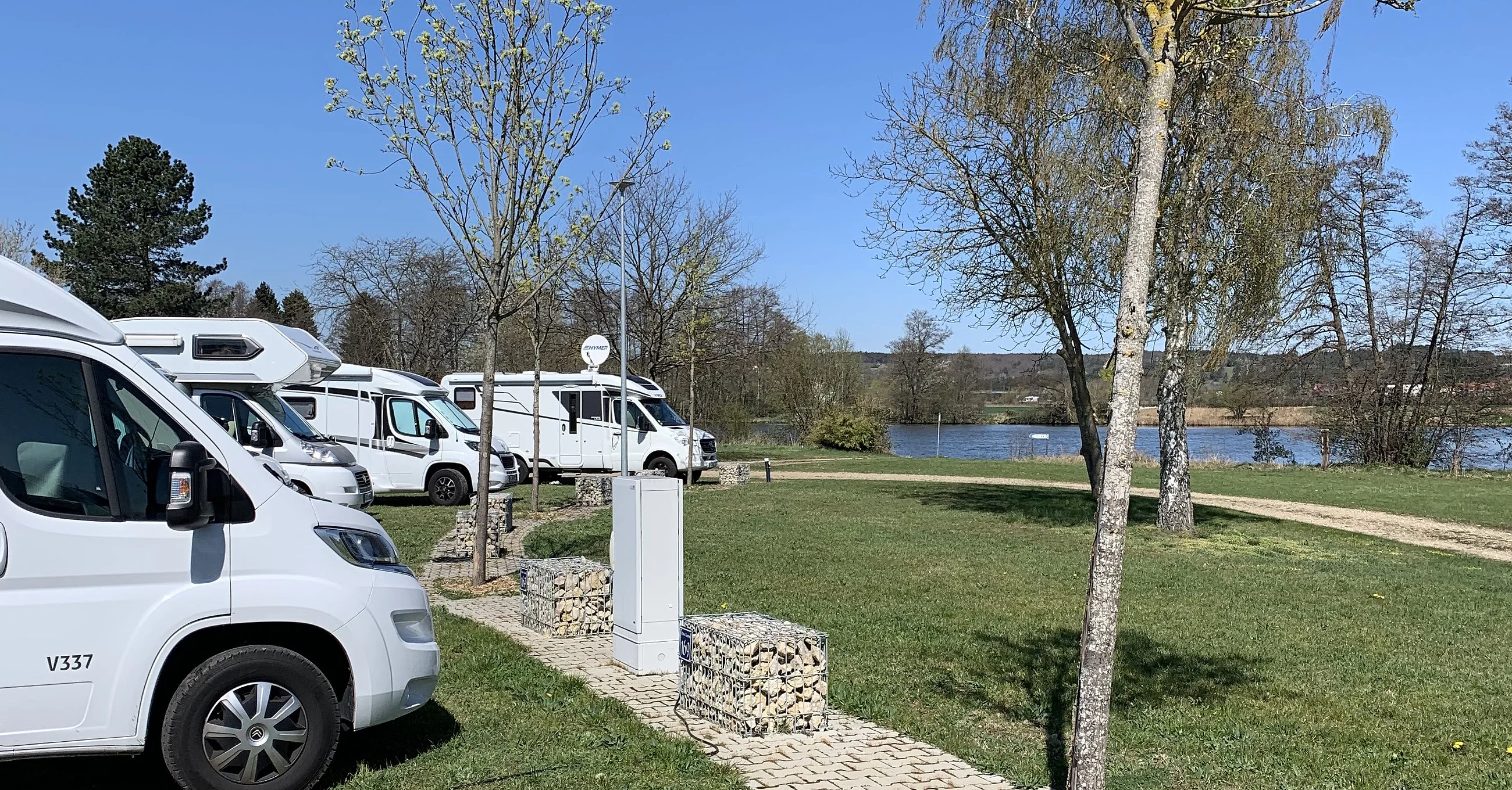 The parking space is located directly on the River Main and lies in a specially created natural biotope. There are numerous shops, grocery stores, restaurants and snack bars within a radius of 200 m. In addition, there is a public transport connection in the immediate vicinity.