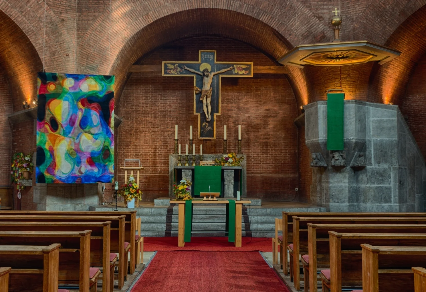 The crucifix is from the 16th century and is ascribed to a pupil of the famous Veit Stoß. The church was destroyed in the Second World War, but was rebuilt in 1950. It is a spiritual place where you can find peace and quiet, light a candle and settle down to pray.