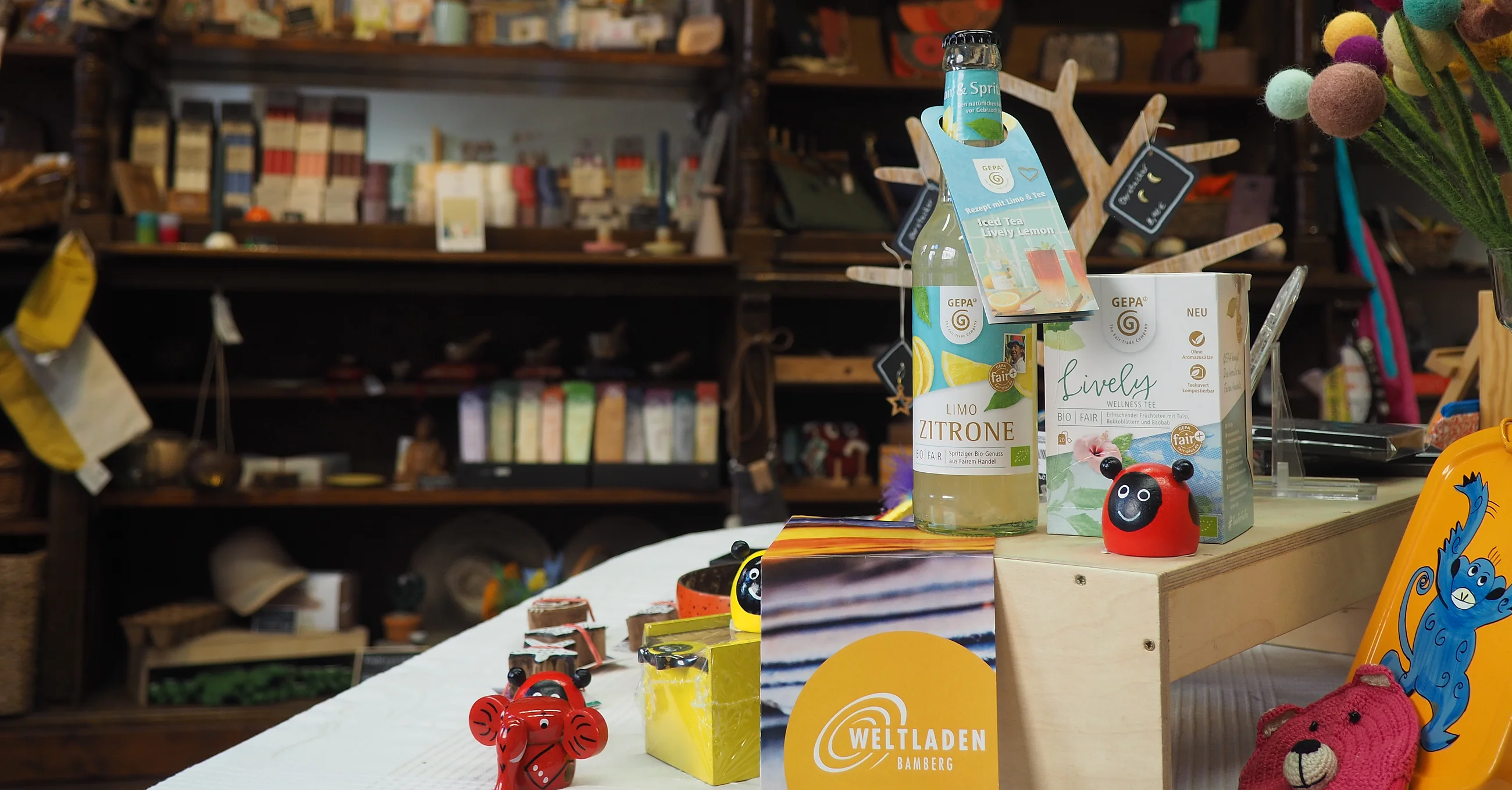 In the Bamberg World Shop you will find fair products with real stories. Wellness and natural cosmetics, candles and decorations, jewelry and accessories, kitchen and bathroom accessories as well as food such as coffee and tea, sweets and snacks, world cuisine and spices, wine, juice and lemonade. We look forward to seeing you.