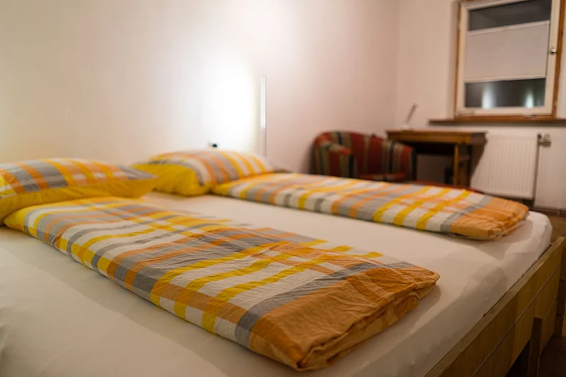 The origins of this house date back to the 12th century. The building has stood in its current size since the beginning of the 18th century. During the very elaborate and careful renovation and restoration, we placed great emphasis on using, as far as possible, only the materials and techniques used when the rooms were originally constructed. You will therefore not find any plasterboard, expanding foam, polystyrene, or similar materials. The existing floorboards were preserved, restored, and supplemented wherever possible. New areas were generally constructed with larch planks according to traditional methods. The floor coverings are treated with organic oils or simply with soap. Walls and ceilings were mostly protected with several layers of lime plaster, then floated or "scraped" and painted with several coats of pure lime paint. This traditional, eco-friendly renovation has created a very healthy indoor climate, but the materials are also delicate. We therefore ask you to treat them with care.