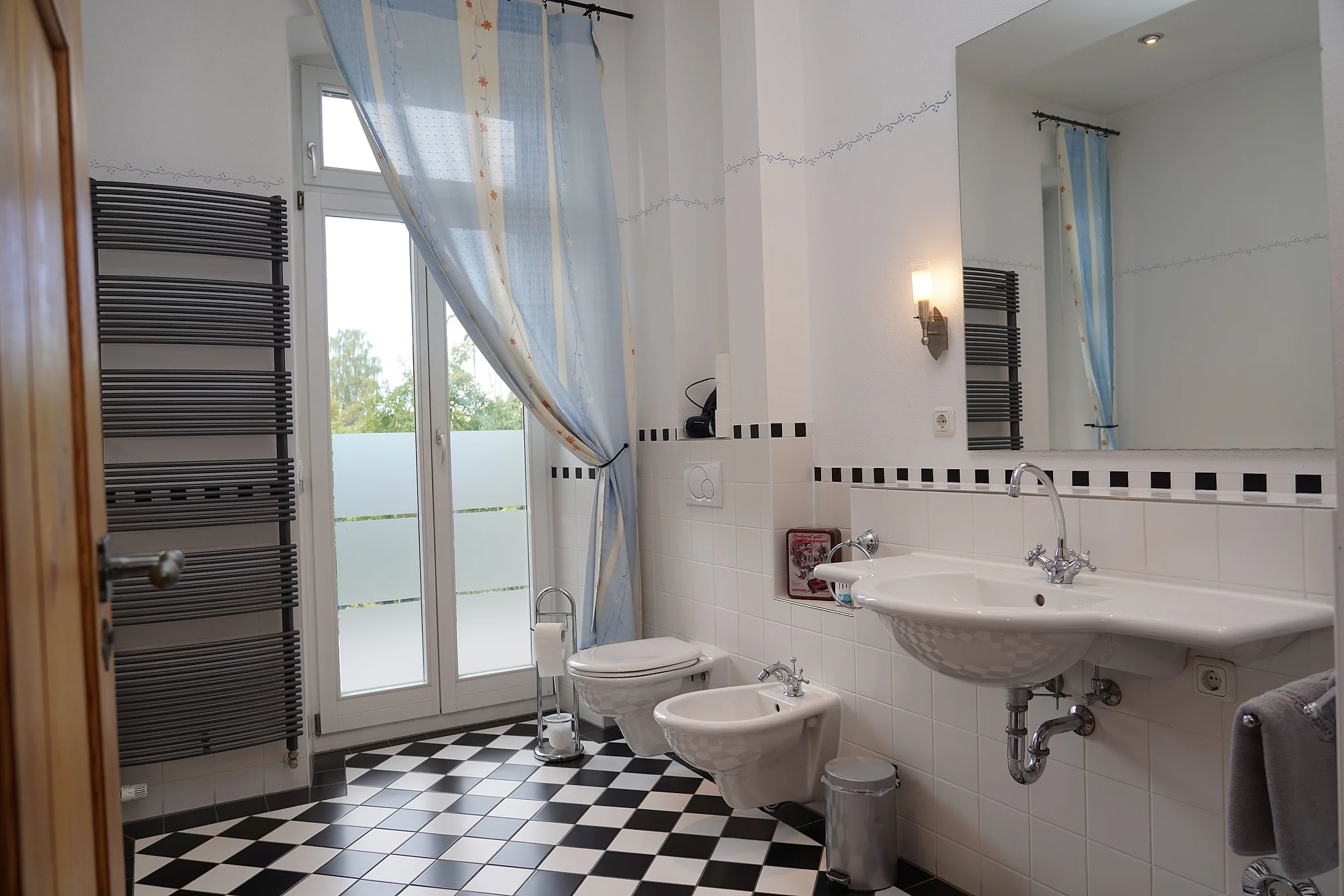 Sauna in the basement, larger groups/up to a maximum of 9 people possible, as there are two apartments in one house, centrally located, city center and old town easily accessible on foot