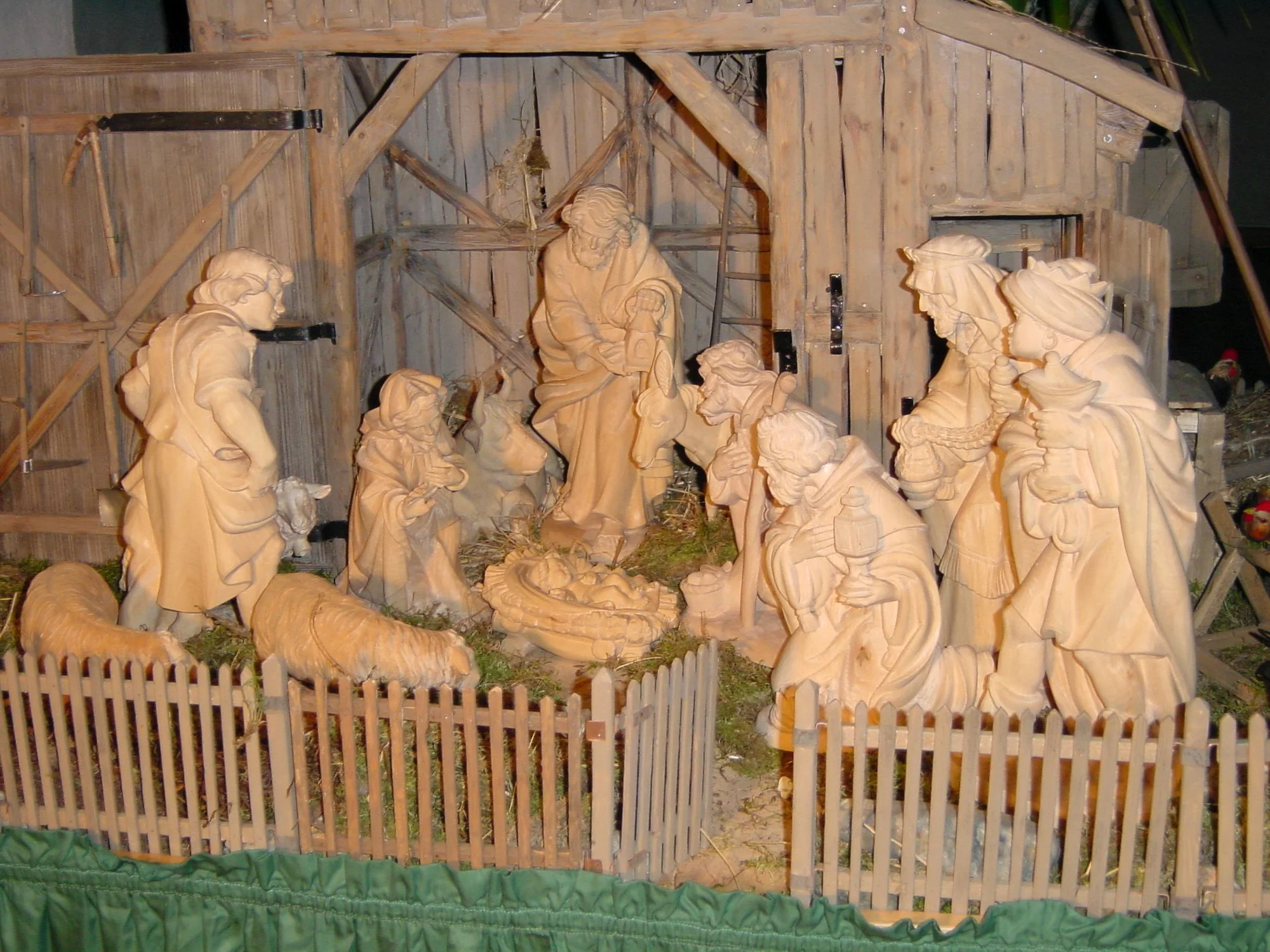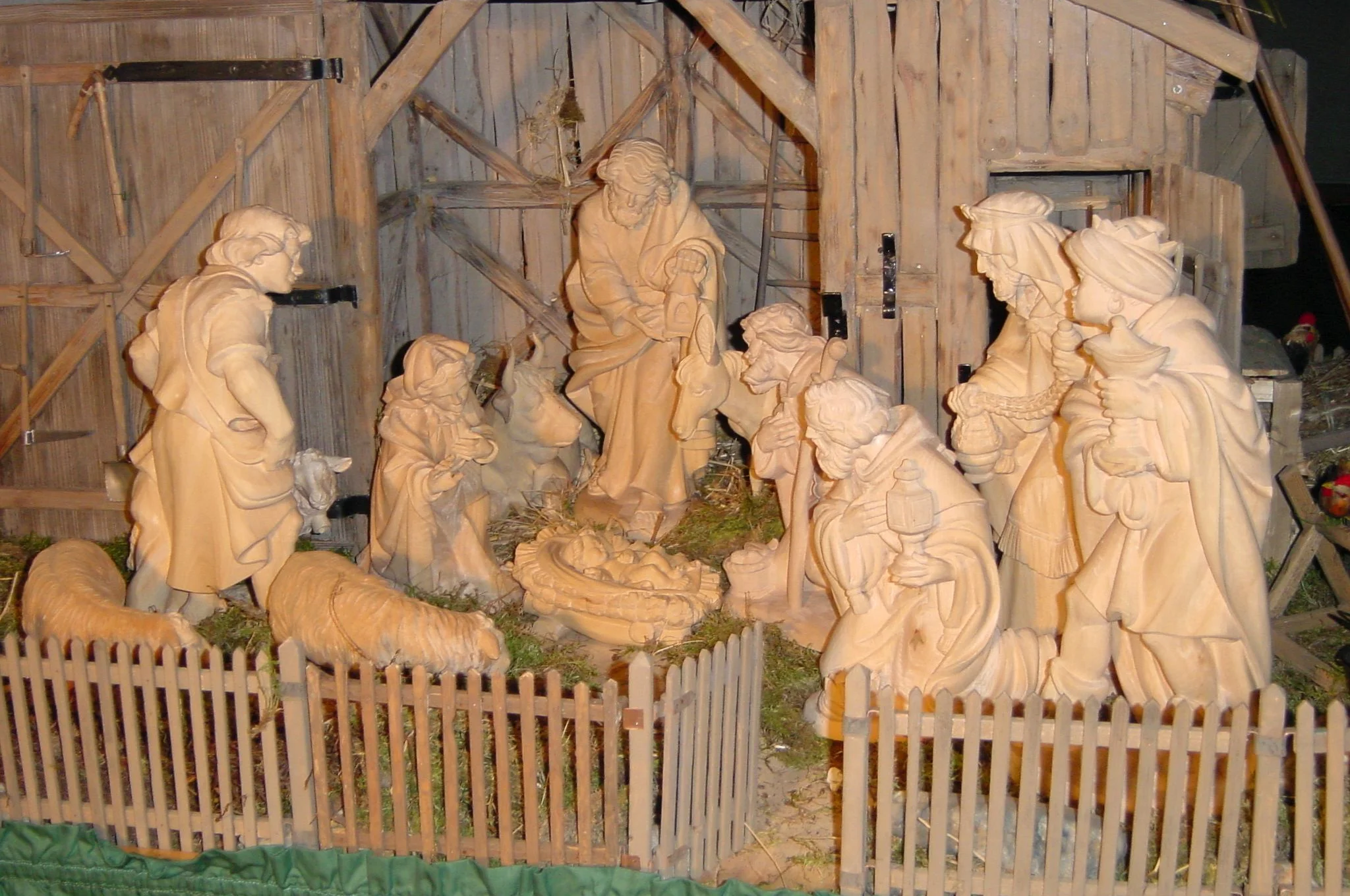 During the Christmas period, the birth of Christ can be seen in the stable in Bethlehem. The figurines were carved in the Grödnertal valley and refined by a wood-carver near Gröbenzell. They are made of natural-finish limewood. The nativity scene was hand-made completely by volunteers.