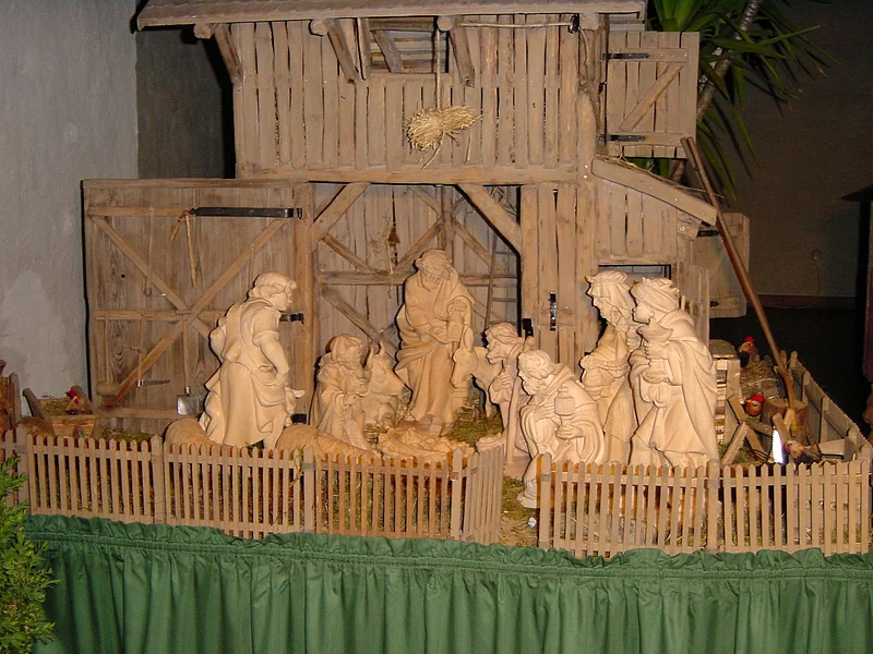 During the Christmas period, the birth of Christ can be seen in the stable in Bethlehem. The figurines were carved in the Grödnertal valley and refined by a wood-carver near Gröbenzell. They are made of natural-finish limewood. The nativity scene was hand-made completely by volunteers.
