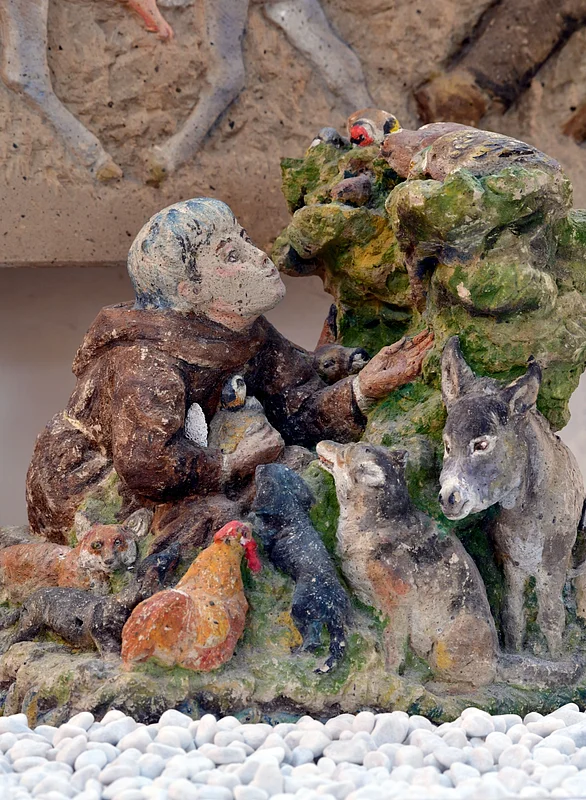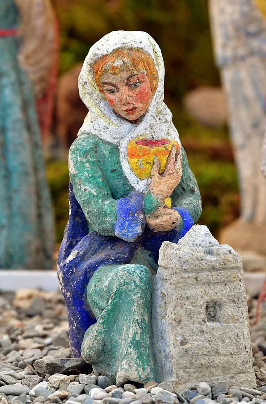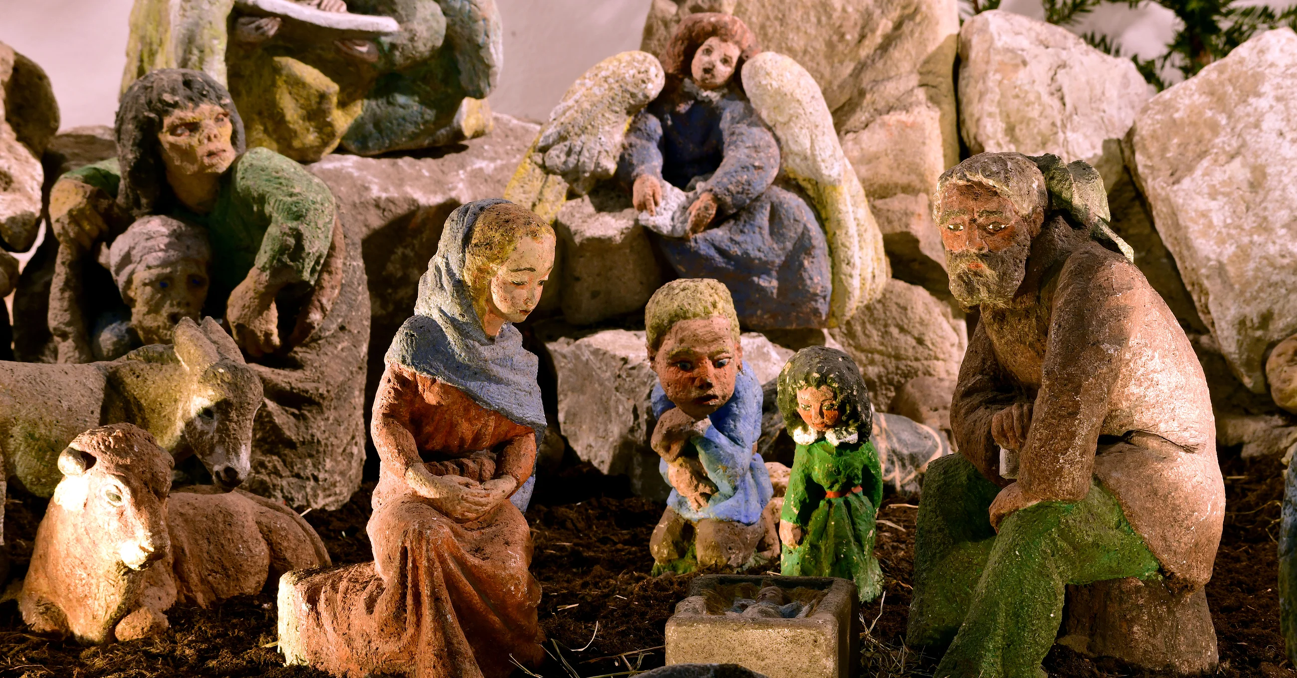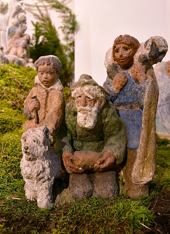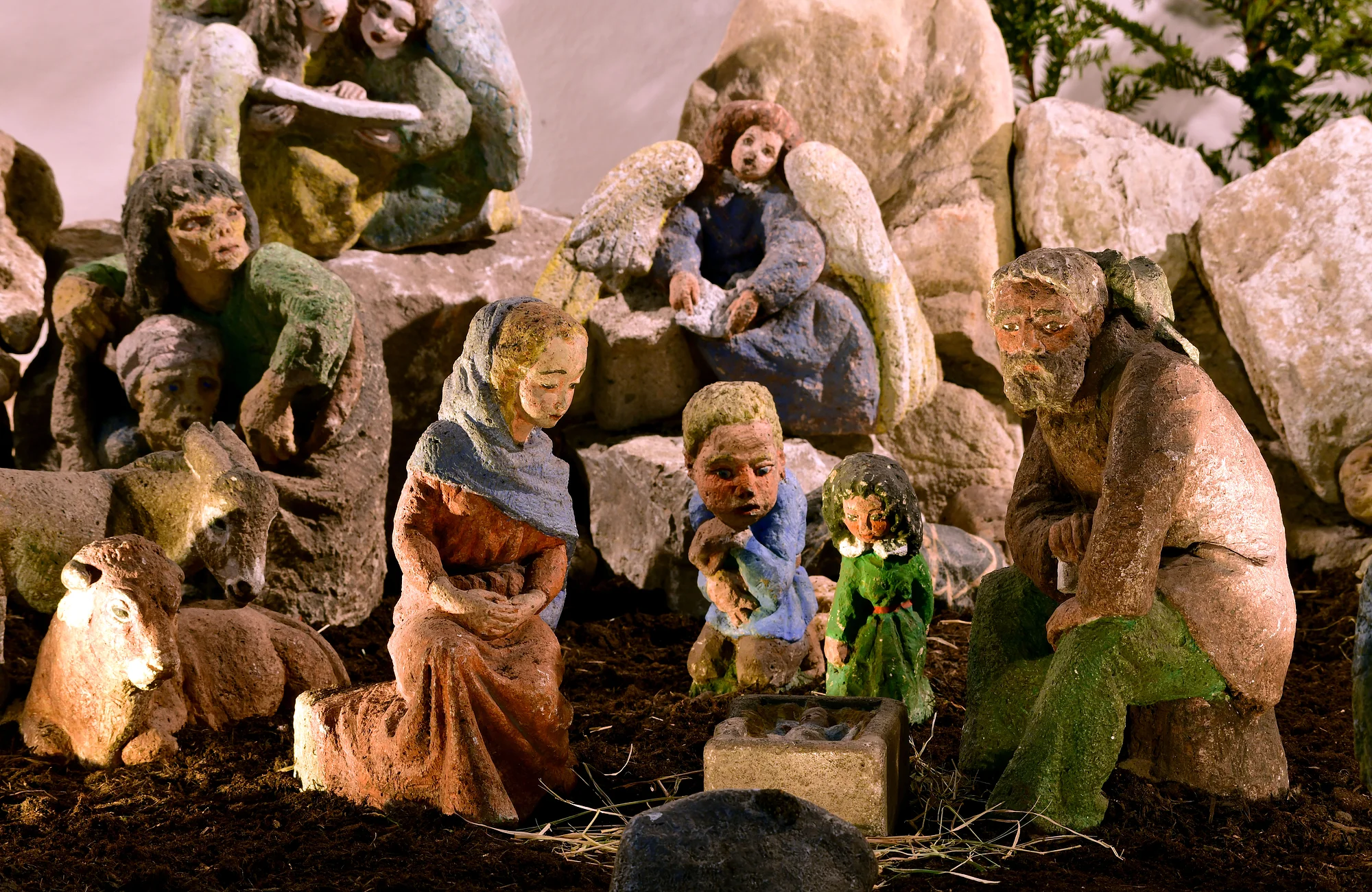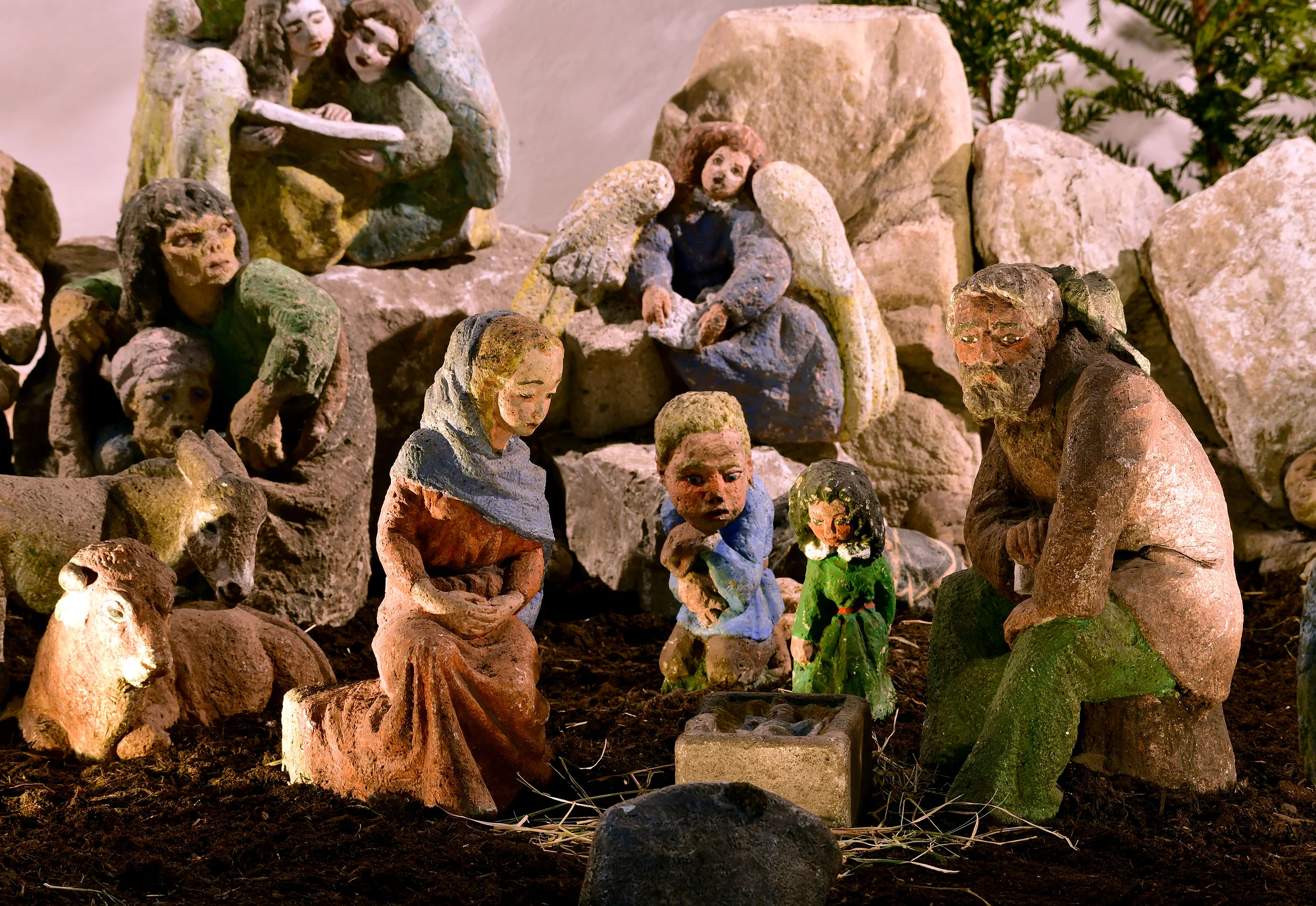 The modern nativity scene was created in coloured stone in the course of several years by artist Winni Bechtel-Kluge. Many figurines from before and after Christmas are gathered around the Baby Jesus.