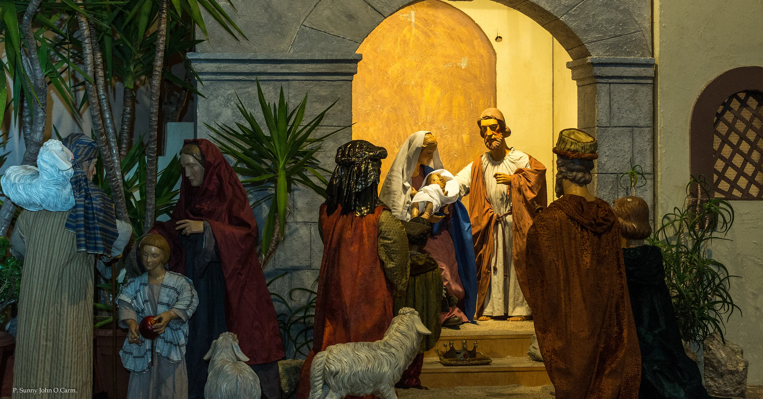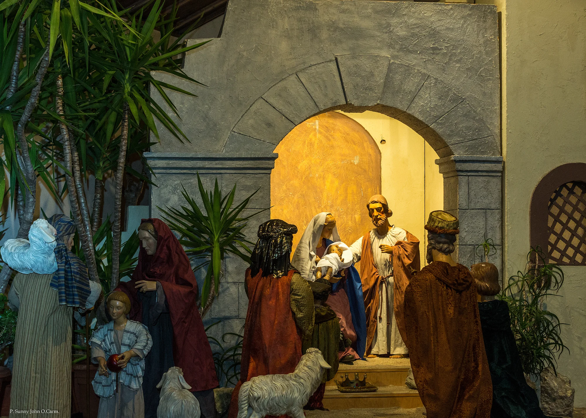 This modern church is home to a large-scale oriental nativity scene.