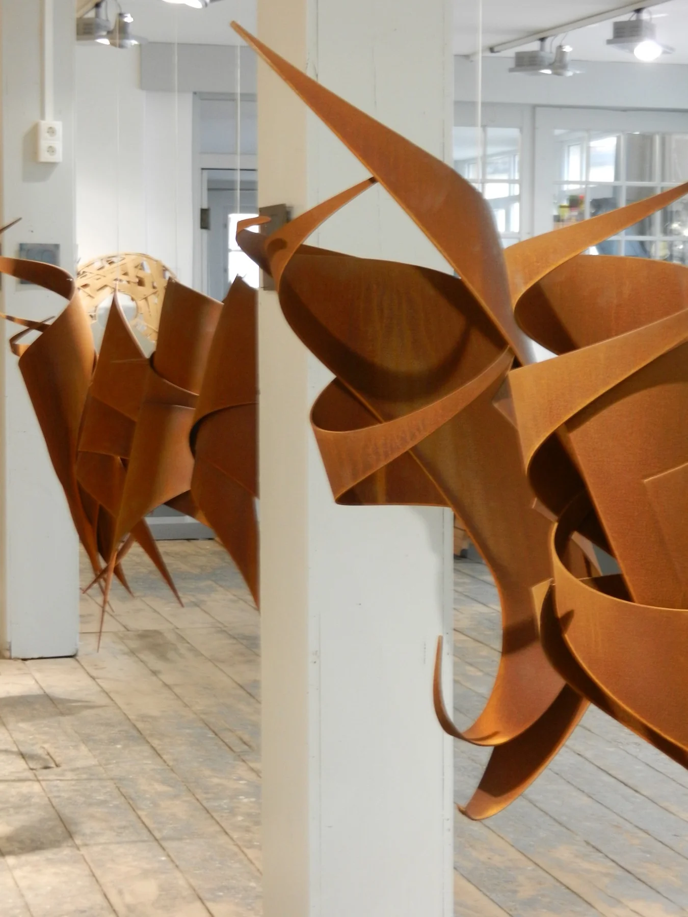Artist Bernd Wagenhäuser presents his work in his new arts loft in the middle of Bamberg. On 200 sqm this new exhibition hall enables him to show some of his smaller works, models, graphic art and installations and sketches, even though he is well known especially for his large Cor-Ten Steel works. An advantage of his new hall is, that it’s possible to see the artist at work, due to the fact, that the loft has an immediate visual access to his manufacturing hall, which is an impressive construction with a high 8 metre ceiling.
