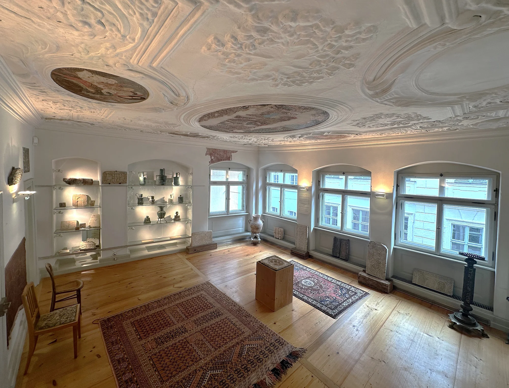 Various themes from the history of the Silk Road between 900 and 1400 are presented using contemporary art. A highlight is the ballroom of the historic building in which the exhibition is housed: here, visitors can enjoy a glimpse into court life around 1,000 years ago. The exhibition was developed both didactically and conceptually over a period of two years.