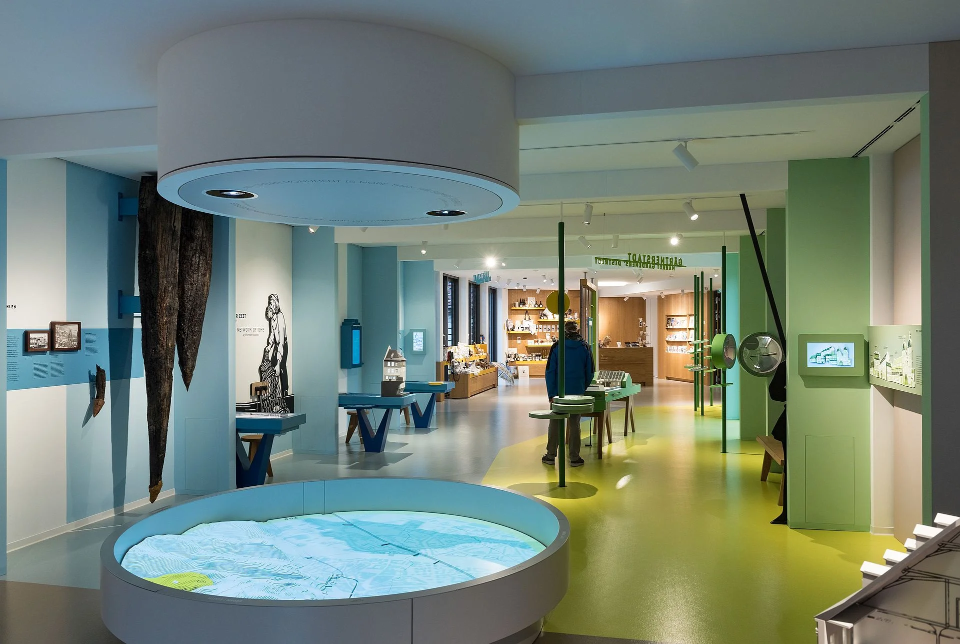 Building models illustrate medieval and baroque architecture. Audio stations, films and digital applications, a seed-wheel and an interactive model of the old town of Bamberg invite visitors to familiarize themselves with the site. Special places in the urban surroundings, which represent the outstanding universal value of Bamberg, are referred to in the exhibition to encourage further explorations of the site.