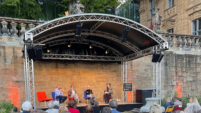 Begrüßung: Nora-Eugenie Gomringer. Der Eintritt ist kosten-, unser barockes Gebäude dabei nicht barrierefrei - herzlich willkommen im Künstlerhaus!